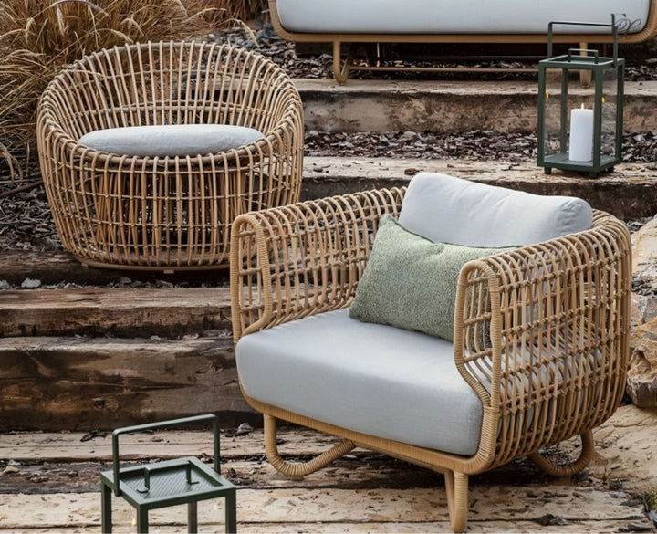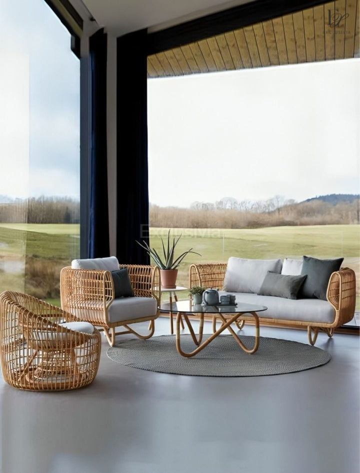 Introducing the KEERIN Modern Outdoor Rattan Sofa, made with high-quality Indonesian rattan and waterproof fabric. Enjoy a durable and comfortable outdoor seating experience with this stylish addition to your patio or garden.