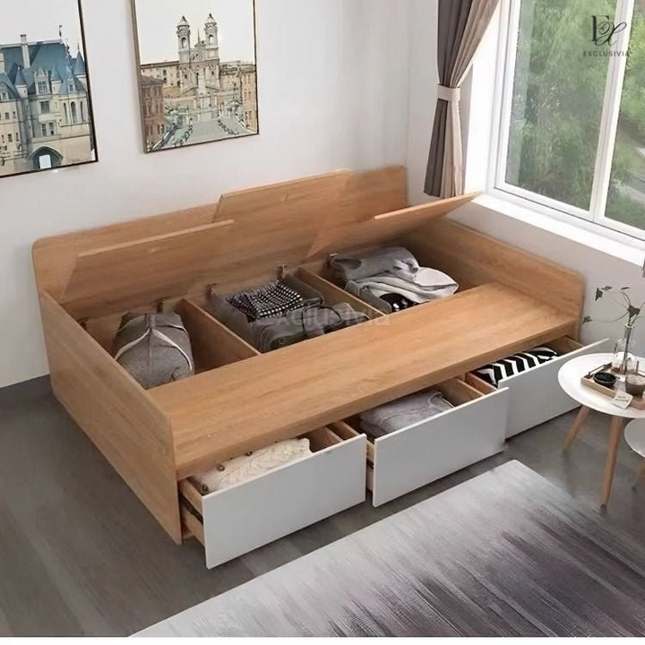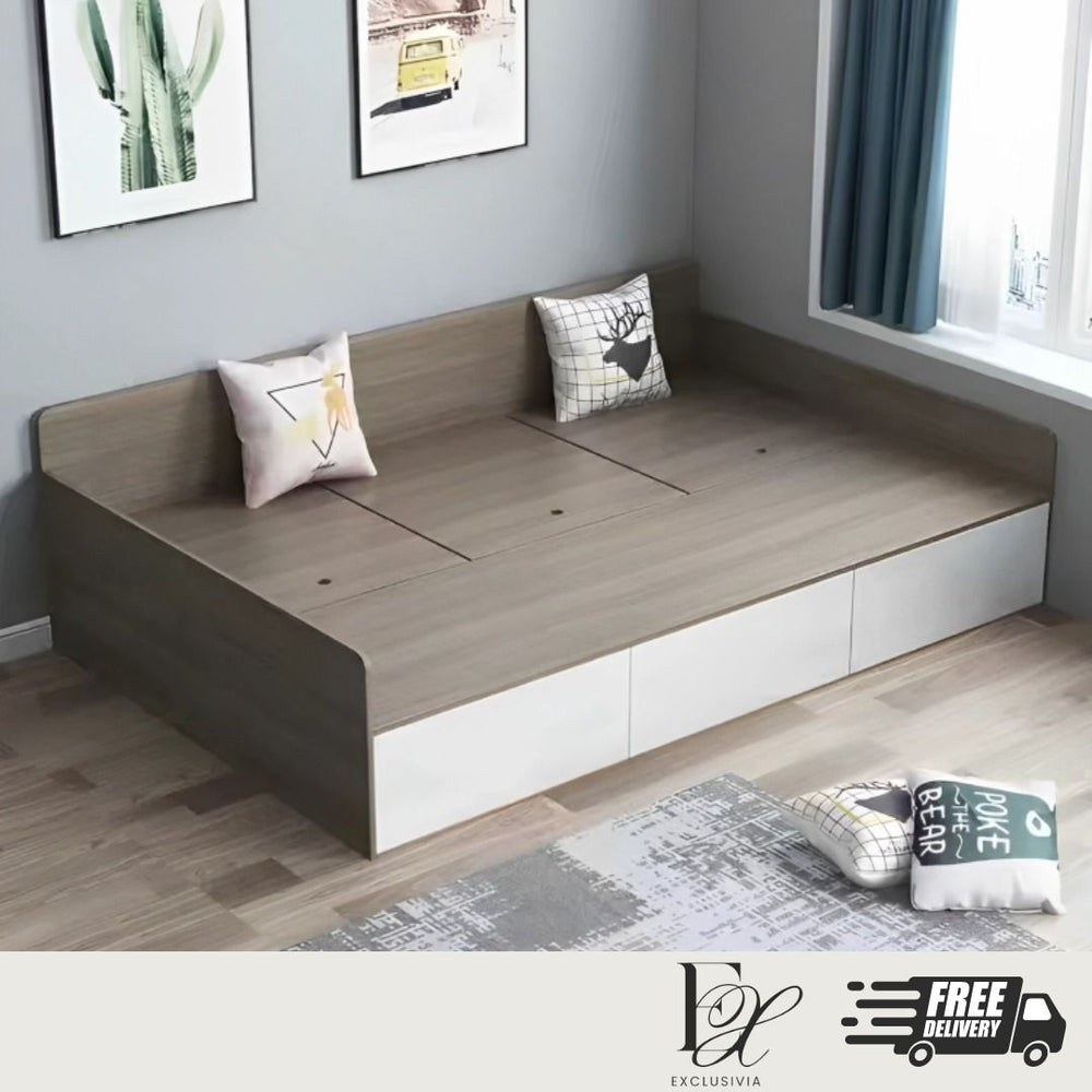 Crafted with precision using high-quality manufactured wood, the ERWIN Modern Storage Bed Frame offers durability and a sleek, contemporary design. Upgrade your bedroom with this stylish and functional piece that provides ample storage space, making it perfect for smaller spaces. Experience the perfect combination of style and functionality with the ERWIN Modern Storage Bed Frame.