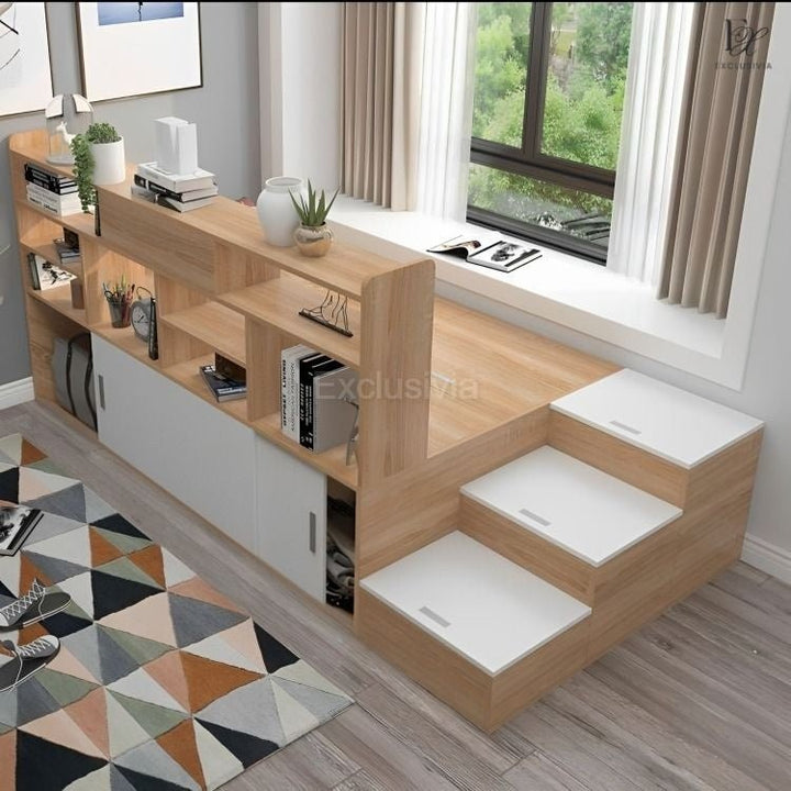 Redefine your bedroom with our KYOTO Solid Wood Japanese Platform Storage Bed. Crafted from solid wood, this bed brings an air of tranquility to your space. The built-in shelving provides a cozy spot for your favorite books, allowing you to unwind and relax before bedtime. Create your dreamy sanctuary effortlessly.