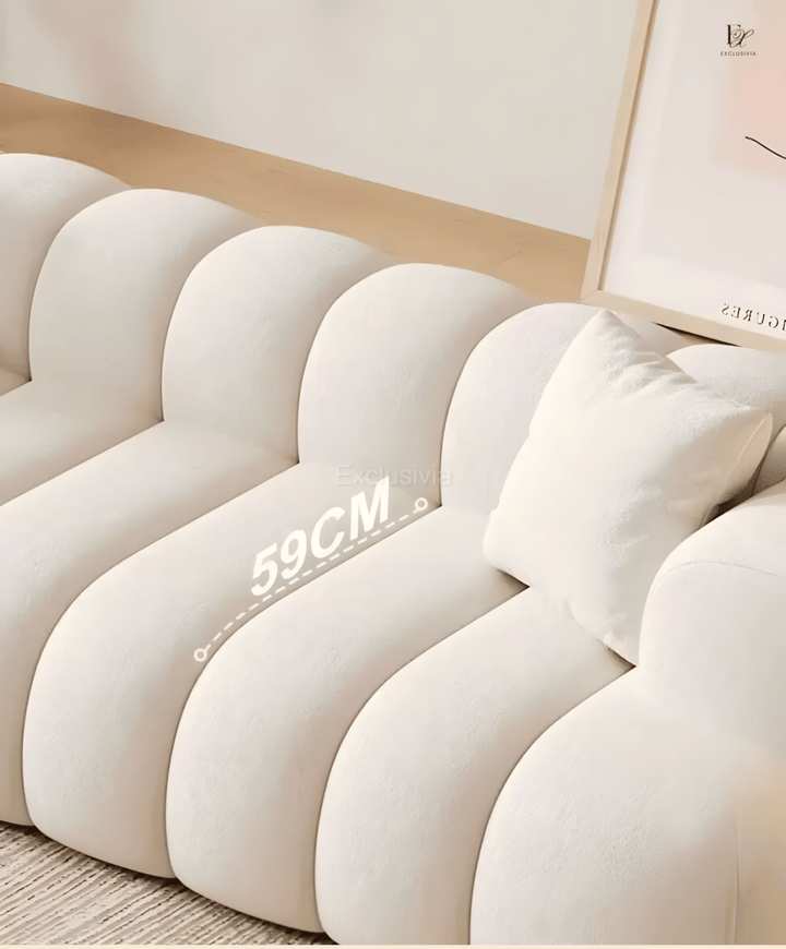 Boucle fabric , oak wood internal structure & high resilience foam cushion