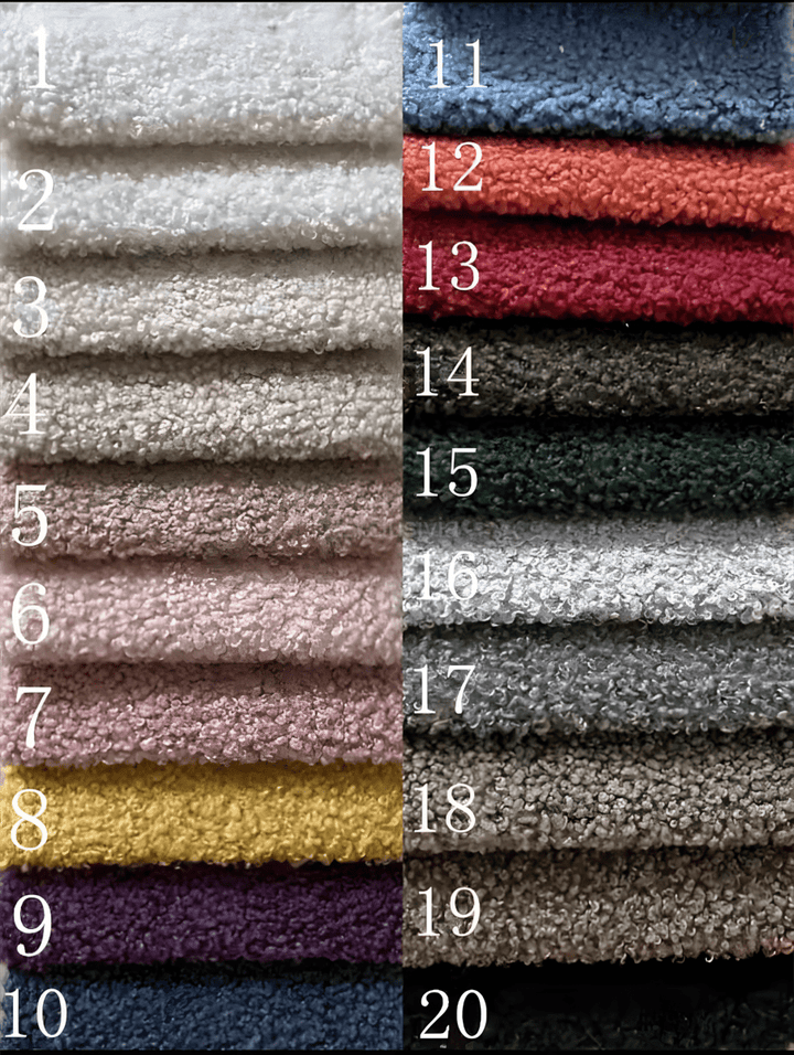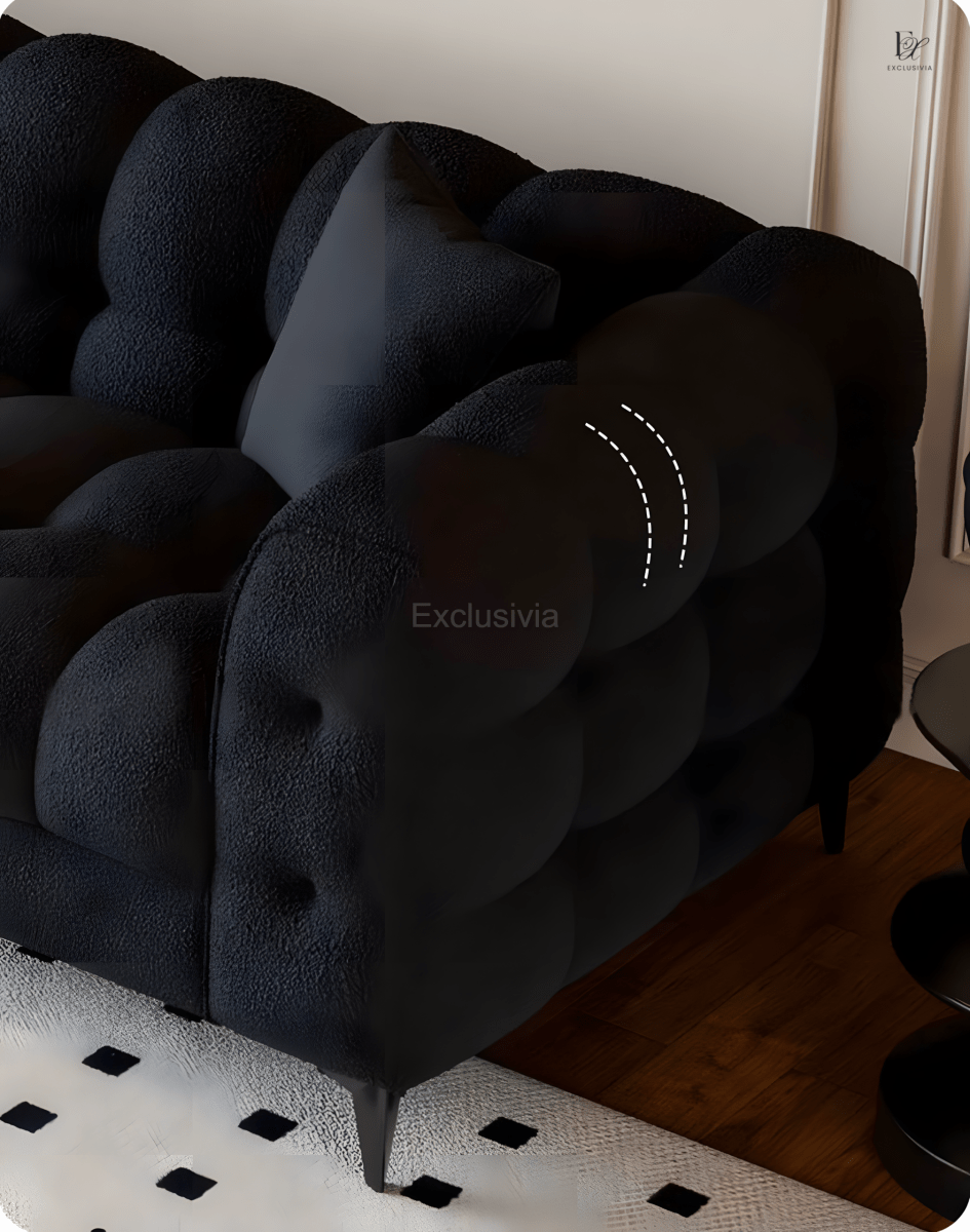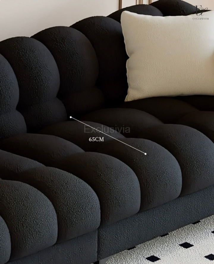 Boucle fabric , high resilience foam cushion , pine wood internal structure & carbon steel legs