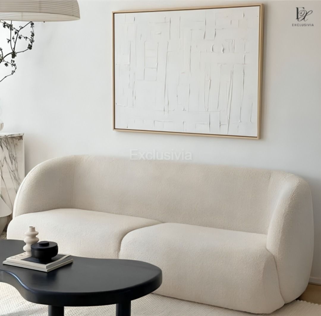 Crafted with luxurious boucle and velvet fabric, the FOSSETT Modern Boucle Sofa boasts both style and comfort. Its high density foam cushion provides superior support, perfect for relaxing after a long day. Upgrade your living room with this modern and elegant piece.