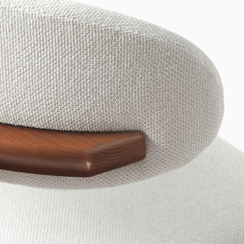 Solid ash wood frame and legs, rubber wood base, cotton-linen fabric upholstery