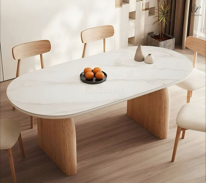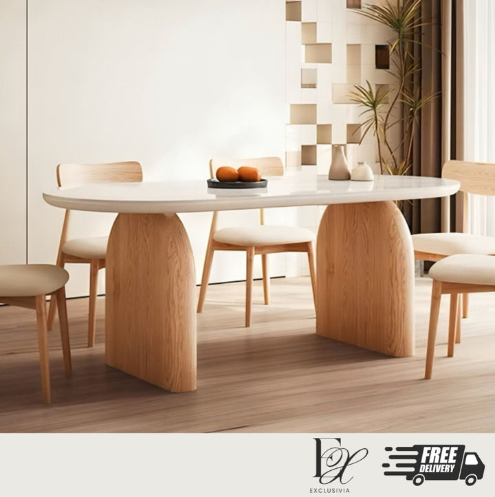 This BLAIR Japandi Sintered Stone Dining Table combines the natural beauty of oak wood with the durability and stain resistance of sintered stone. Perfect for everyday use and special occasions alike, this table is a functional and elegant addition to any dining space.