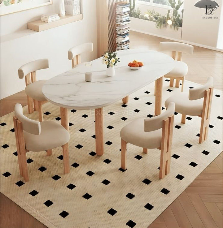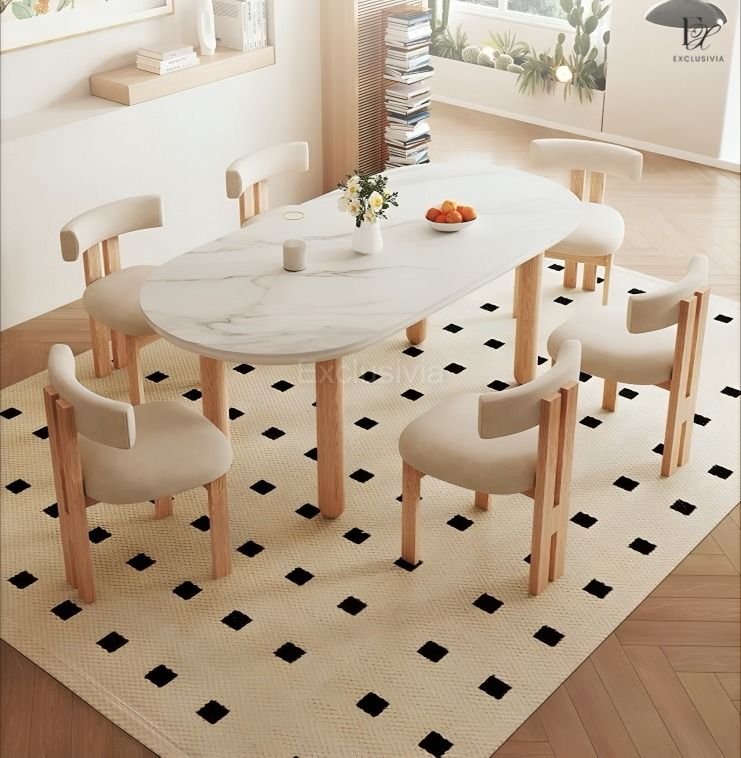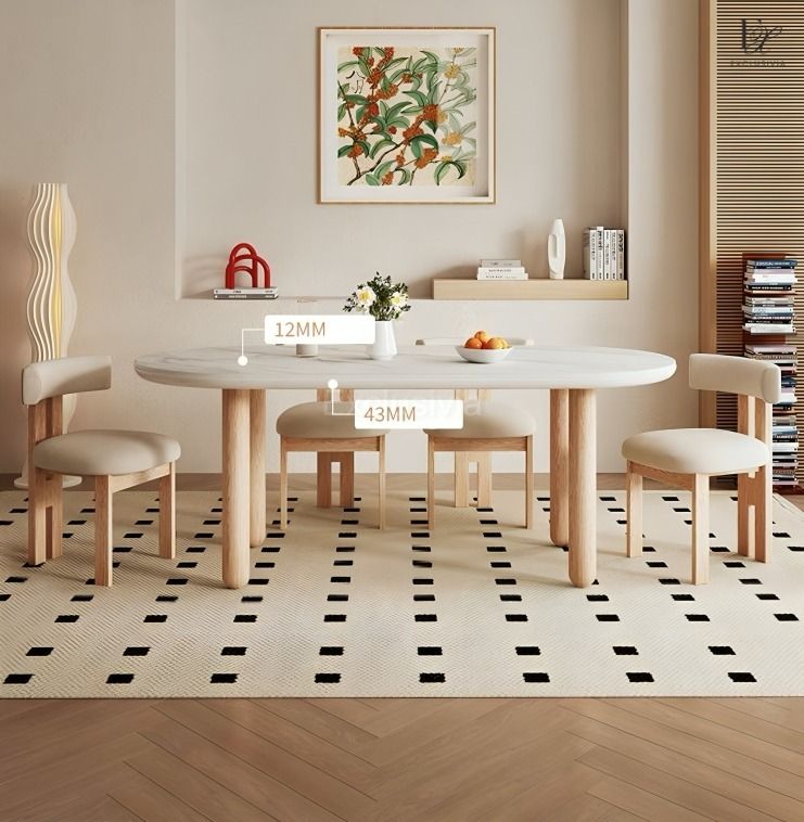 This DOVE Japandi Sintered Stone Dining Table is expertly crafted with durable sintered stone and pine wood for a sleek and sturdy design. Featuring natural materials, it is not only aesthetically pleasing but also long-lasting. Upgrade your dining experience with this modern and sustainable table.