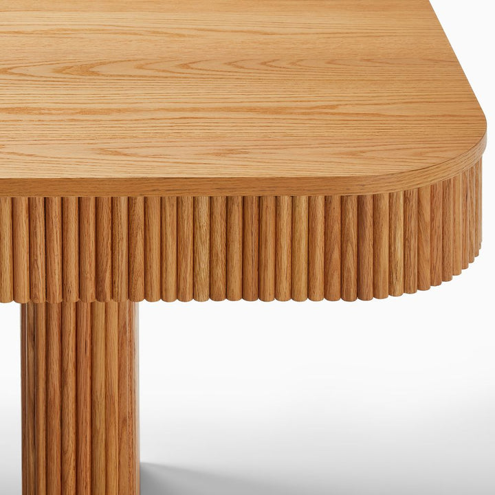 The rounded ribbed base and softened corners elevate its minimal form, while the smooth tabletop highlights the natural grain and character of pine.