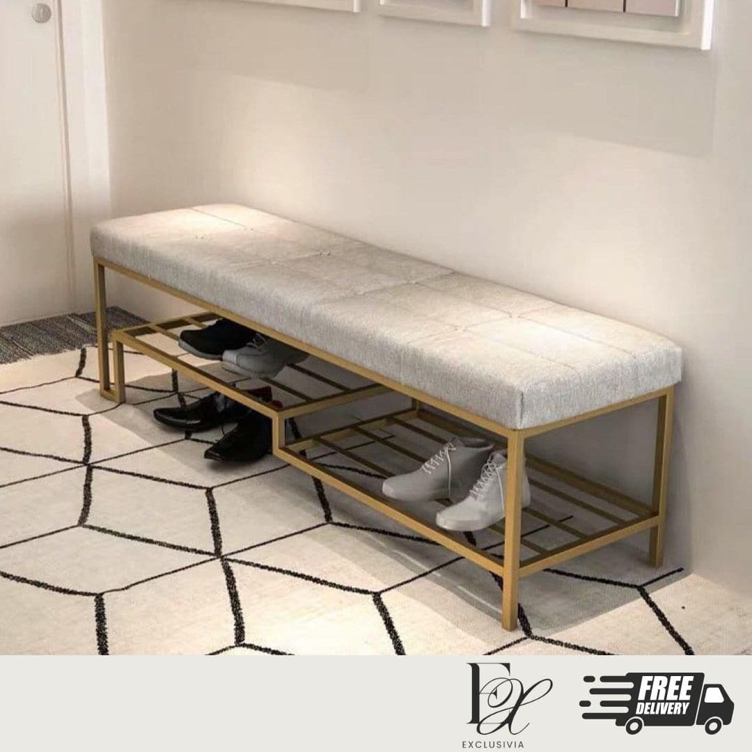 Effortlessly organize your shoes with our industrial-inspired JAX Shoe Rack Bench. The uneven tier height offers ample storage for taller shoes, while the open design provides proper ventilation to keep them fresh. Use it as a stylish bench at the end of your bed for extra functionality. Transform your bedroom with this multi-functional piece.