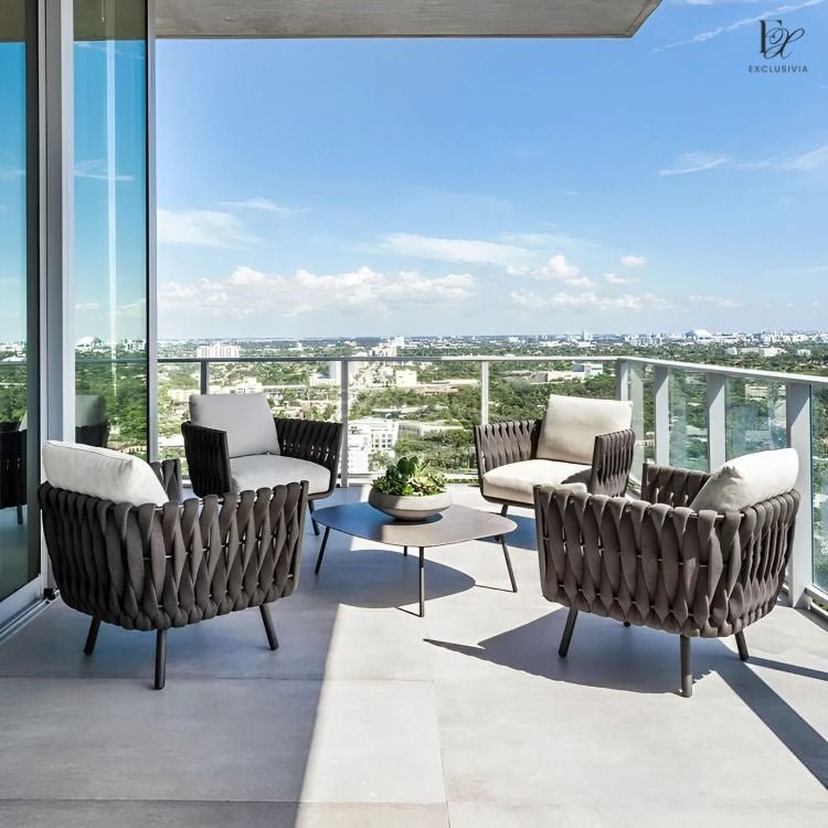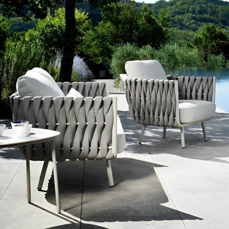 Handwoven textilene rope, Aluminium Frame, Cushion (Grey)