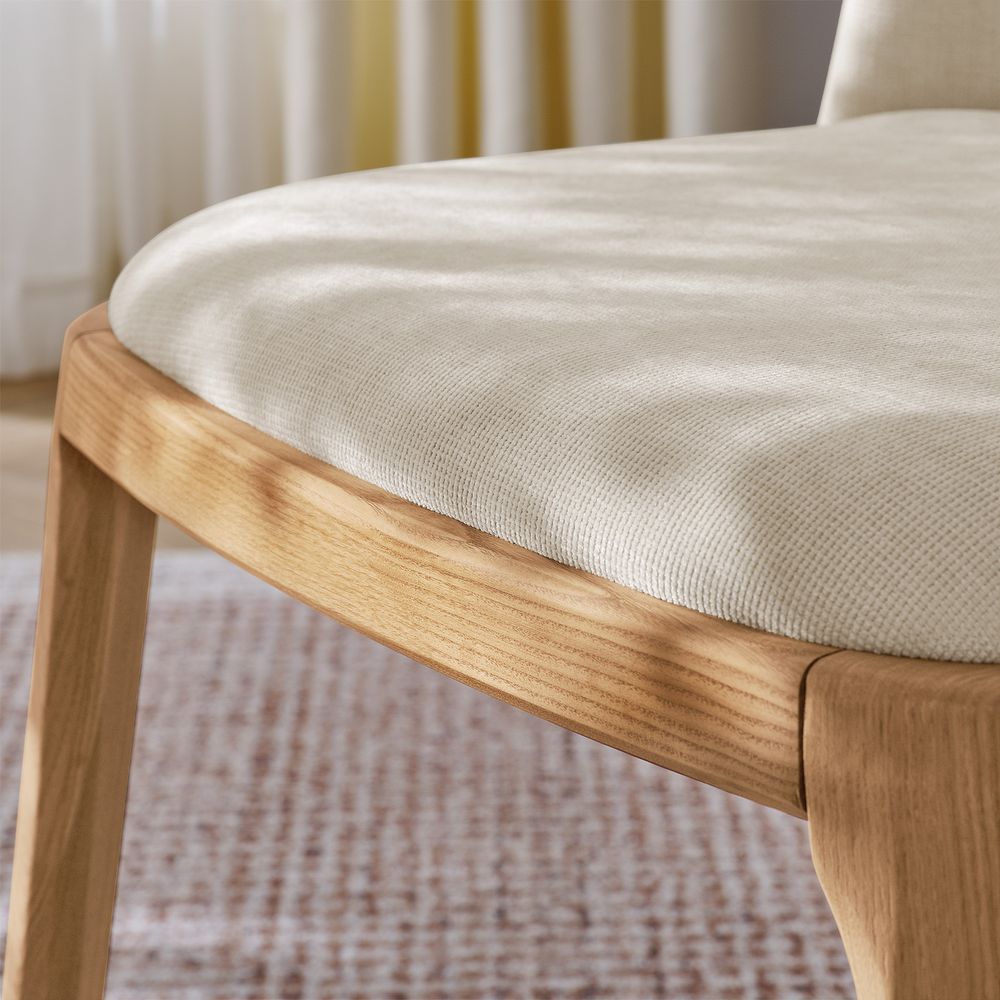 The Norrin Dining Chairs pair modern simplicity with soft textures. Upholstered in breathable cotton linen and supported by a solid ash wood frame, their curved silhouette and plush cushioning offer everyday comfort with a refined, natural touch.