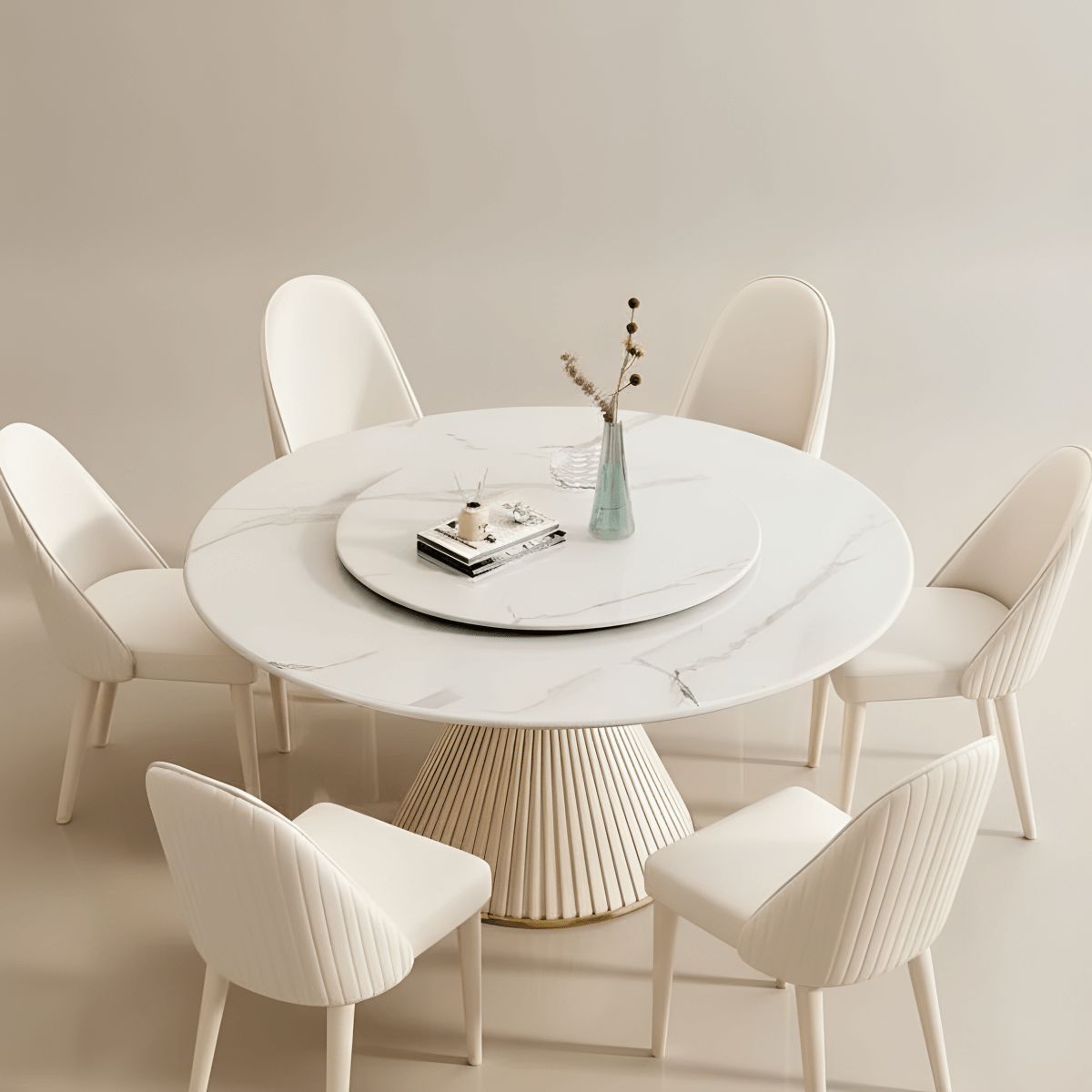 Introducing TARA Modern Sintered Stone Round Dining Table. Featuring durable sintered stone, this table offers long-lasting strength and style. With a smooth and modern design, it's the perfect addition to any dining room. Enjoy the benefits of a stylish and sturdy dining table with TARA.