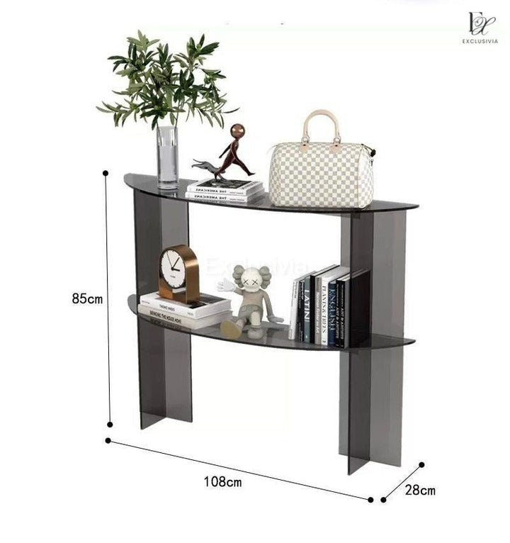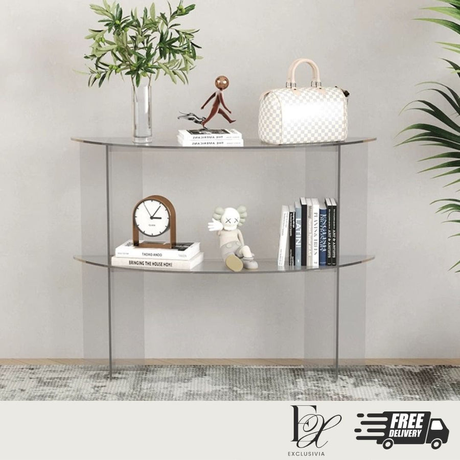 Display your home decor and more with the CEREBUS Minimalist Acrylic Display Shelf. Its contemporary, double-tier design is both functional and stylish, while the transparent or black tint options add a modern touch to any room. Elevate your space with this sleek and versatile display shelf.