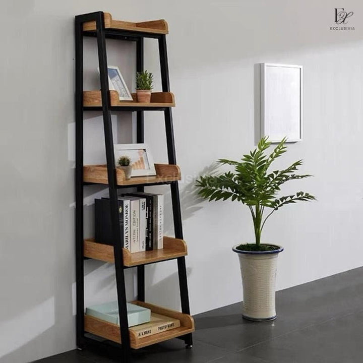 Add an understated touch to your interior design with the DEVS Rustic Solid Wood Ladder Shelf. Featuring a modern and minimalist design, this shelf adds a touch of industrial style to any room. Crafted from high-quality solid wood, it is both durable and stylish, making it the perfect addition to any contemporary or industrial-themed space.