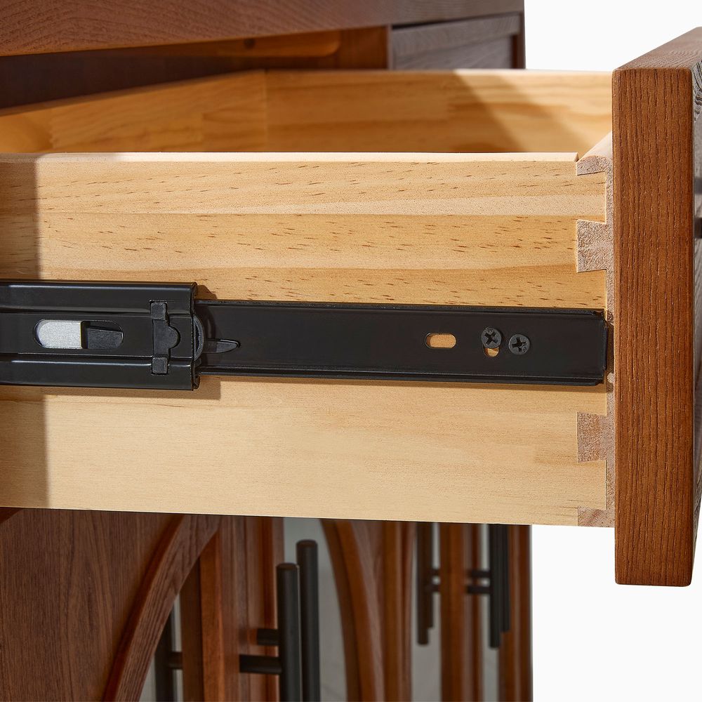 Halden’s sculpted arch doors and linear frame blend strength with subtle nostalgia. Built from kiln-dried solid pine, it includes dovetail drawers and adjustable shelves for effortless organization. The soft curves contrast its sturdy form, giving it a timeless appeal that complements both classic and contemporary spaces.
