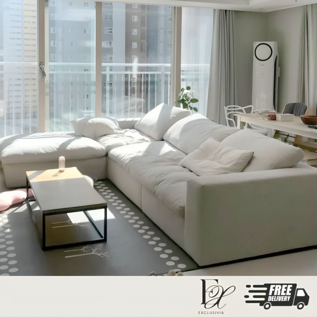 Expertly crafted with high quality fabric, this AUBREEY Modern L Shaped Sofa offers both comfort and durability. The high density foam cushion and pine wood internal structure ensure a luxurious and sturdy seating experience. Perfect for enhancing your living space with style and functionality.