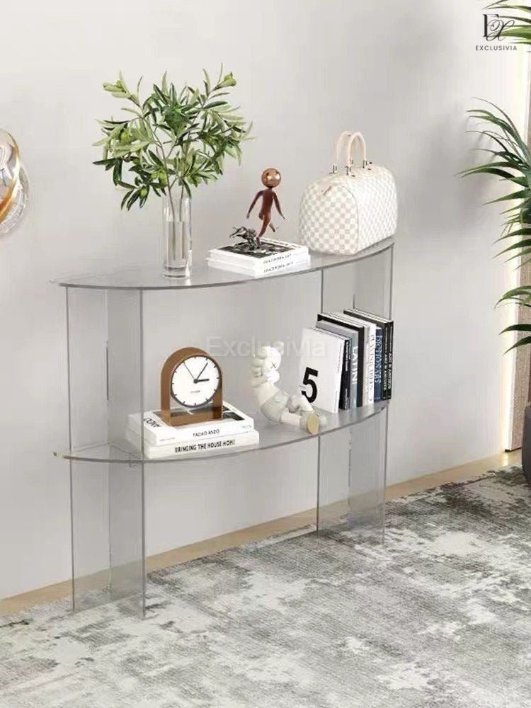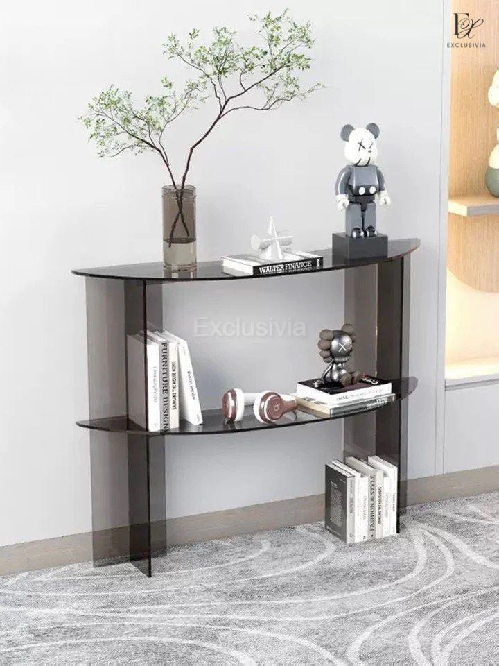 Display your home decor and more with the CEREBUS Minimalist Acrylic Display Shelf. Its contemporary, double-tier design is both functional and stylish, while the transparent or black tint options add a modern touch to any room. Elevate your space with this sleek and versatile display shelf.