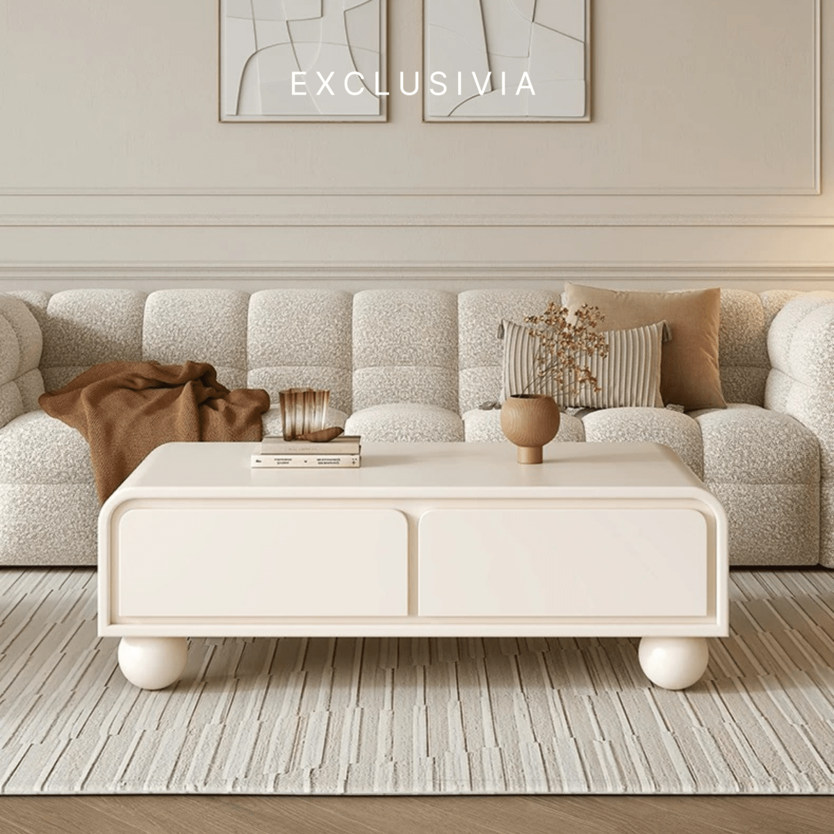 Transform your living room with the NOVA Cream Lacquer Set, a modern statement piece that blends playful charm with minimalist elegance. Designed in a soft milk-white finish with rounded edges and ball feet, this set brings both style and functionality into your home.