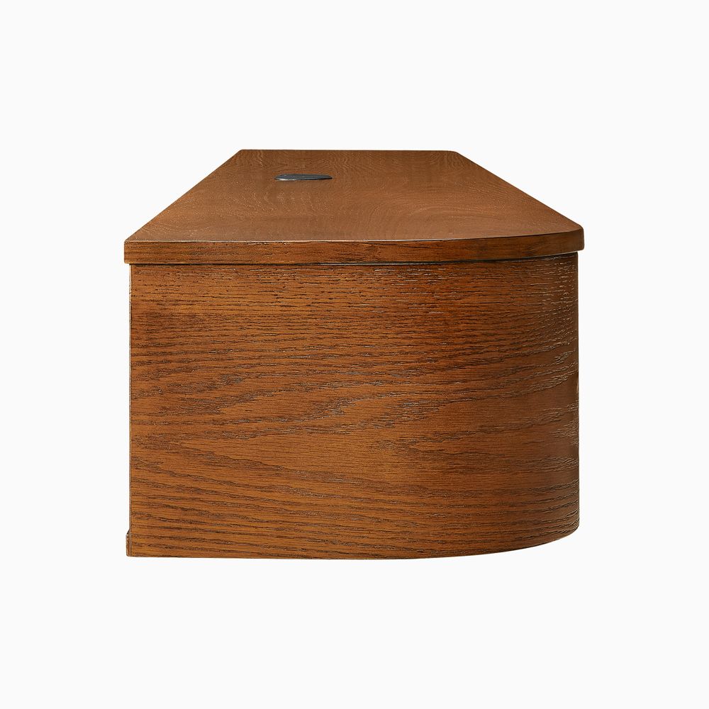 The Vale Floating Media Console embodies quiet sophistication through its seamless curves and natural wood grain. Wall-mounted for a light, open feel, it provides discreet storage that keeps your space organized and uncluttered.