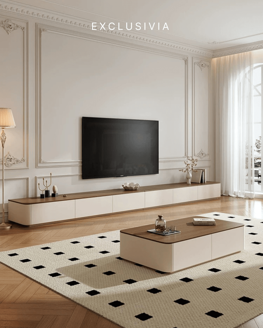 This minimalist TV console combines warm oak tones with a smooth matte white base, creating a clean yet luxurious statement piece. The rounded edges soften the design, while the long, low profile adds a sense of spacious elegance to your living room. Crafted for both beauty and durability, it’s the perfect blend of modern simplicity and timeless sophistication.