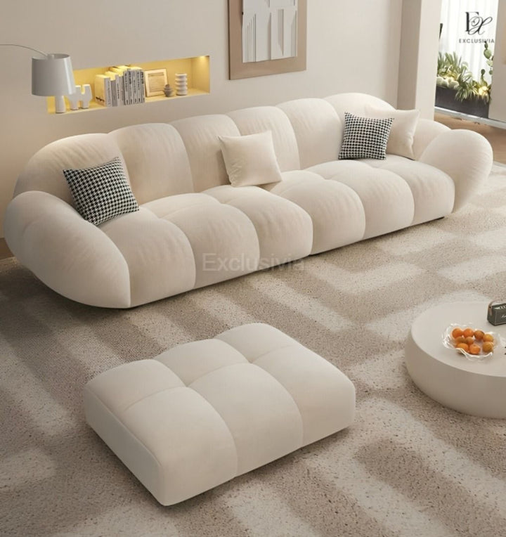 Velvet fabric, High resilience foam cushion & Pine wood internal structure