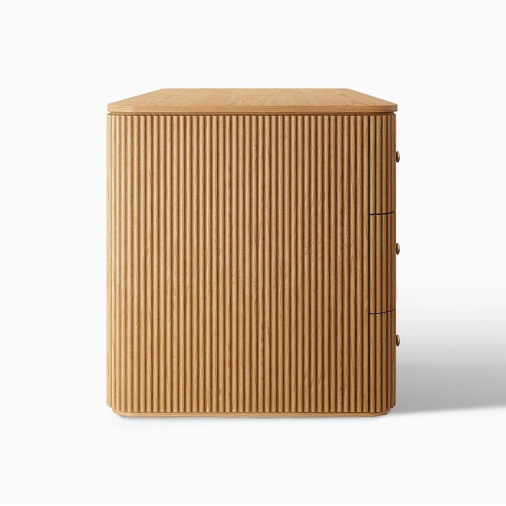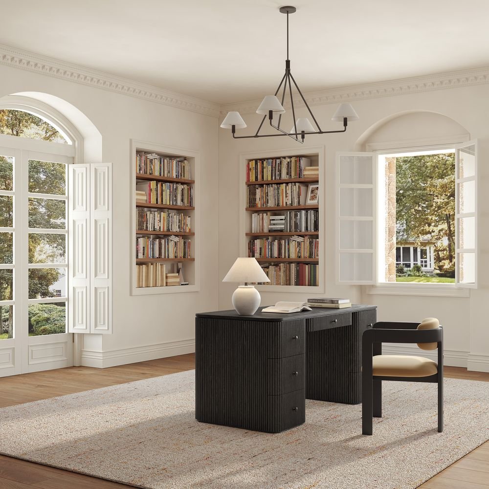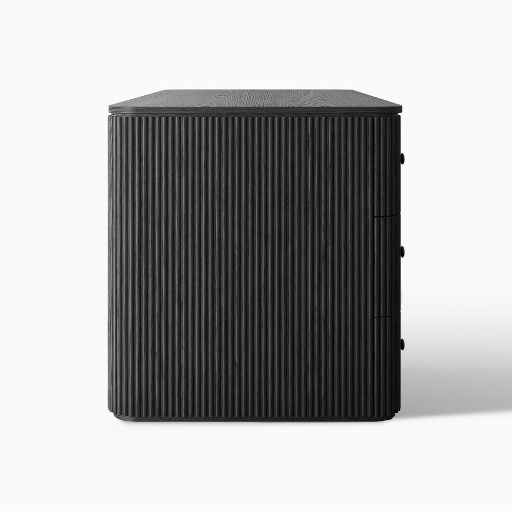 Crafted from kiln-dried solid wood and oak veneers, the Raundal Desk merges vintage craftsmanship with modern precision. Its sculpted fluted body and seven spacious drawers blend visual depth with practical storage, creating a bold yet balanced centerpiece for contemporary interiors.